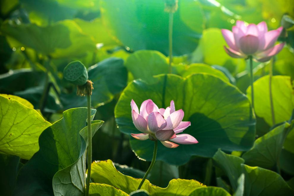 【新華圖視】夏日拍荷 感受攝影構圖魅力
