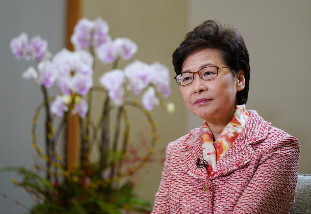 香港特區行政長官林鄭月娥在行政長官辦公室接受新華社記者專訪。新華社記者 王申 攝
