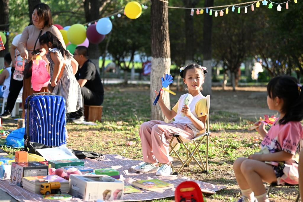 暑假期間,孩子們在天津市少年兒童活動中心舉辦的娃娃集市上。新華社記者 李然 攝