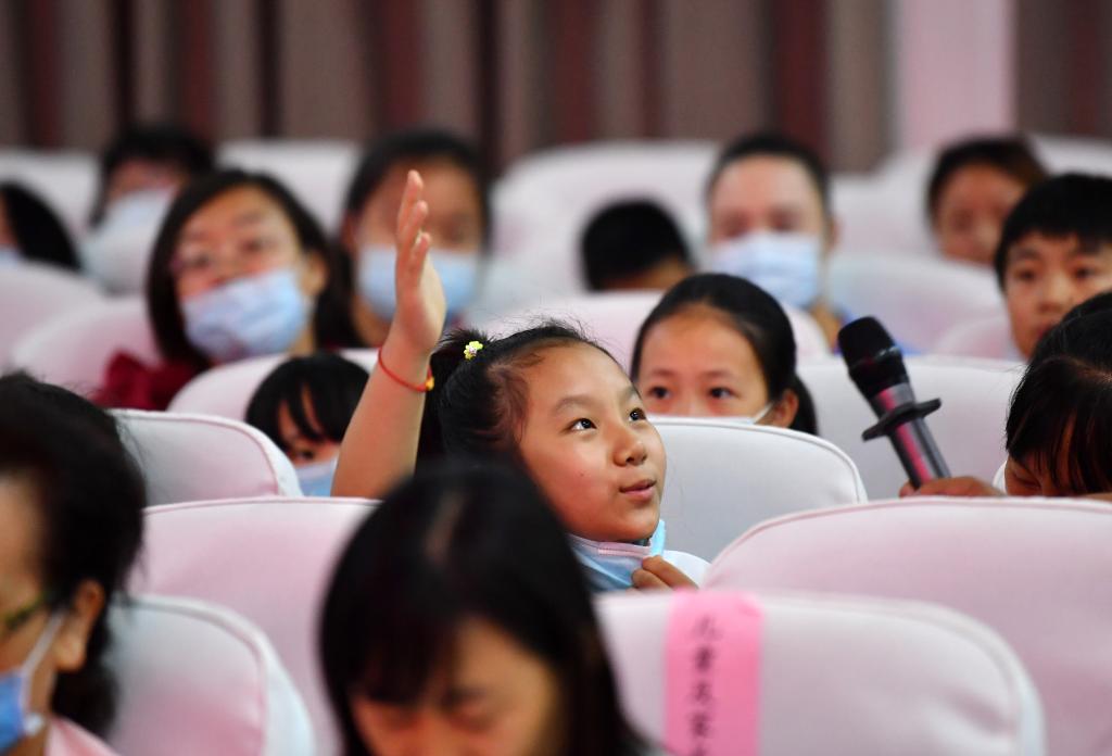 在天津市北辰區青光村黨群服務中心,學生在一場安全教育活動上回答問題。新華社記者 李然 攝