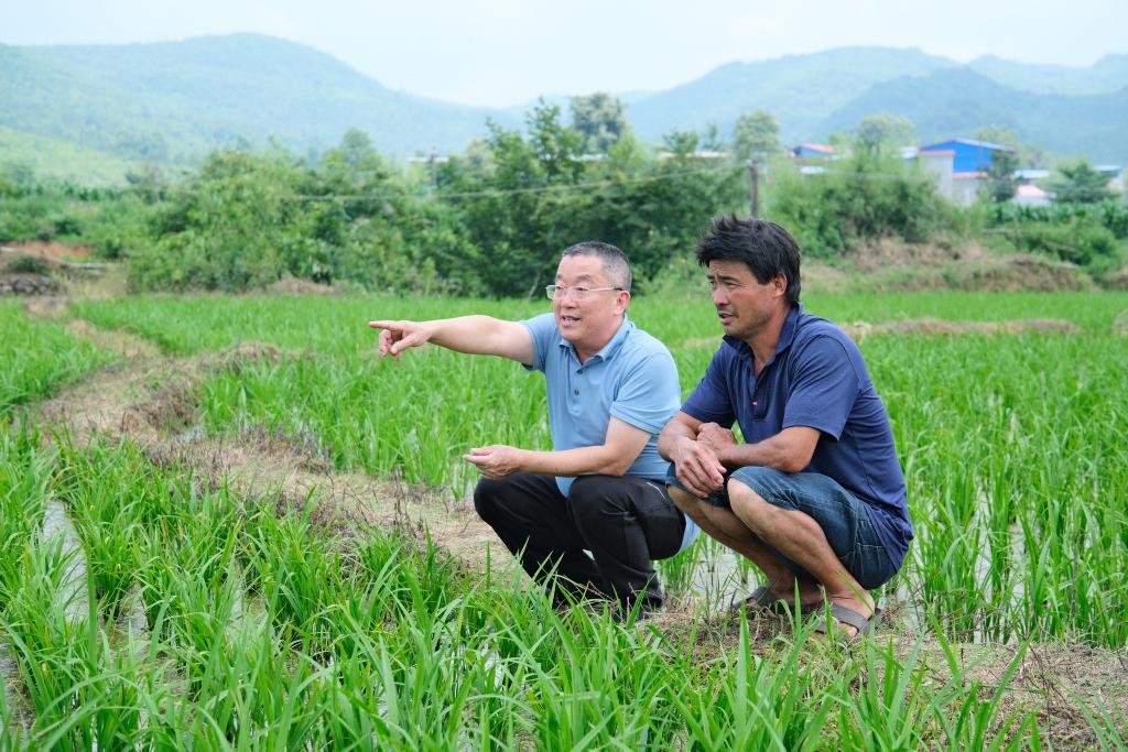盛夏時節,嫩綠的稻苗在一碧如洗的天空下搖曳,阡陌小徑貫穿稻田,形成一幅如詩如畫的耕種畫卷。廣西壯族自治區全州縣東山瑤族鄉白竹村村民唐增亮撥開稻苗,一旁的駐村第一書記莫日發叮囑道:“今年也要記得使用農家肥,高殘留農藥可過不了檢。”
