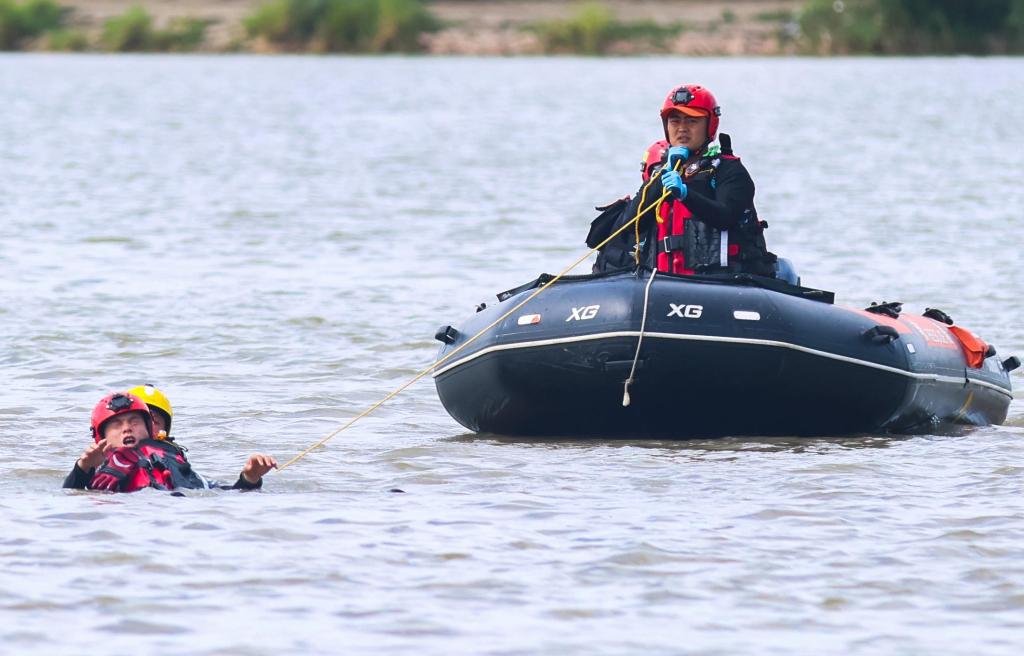 8月5日,黑龍江省森林消防總隊哈爾濱市支隊在松花江哈爾濱段舉行水域救援演練,檢驗隊伍練兵備戰水平,提升綜合實戰救援能力。