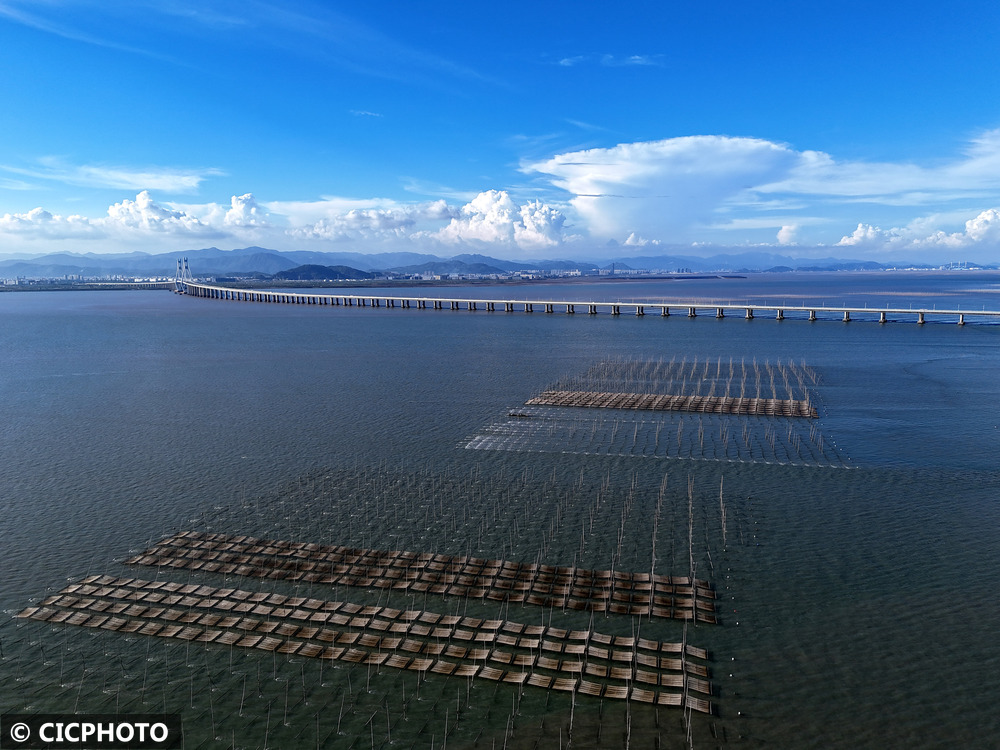 ↑2025年9月27日拍攝的浙江省溫州市樂清灣口“海上田園”。(無人機照片)CICPHOTO/蔡寬元 攝