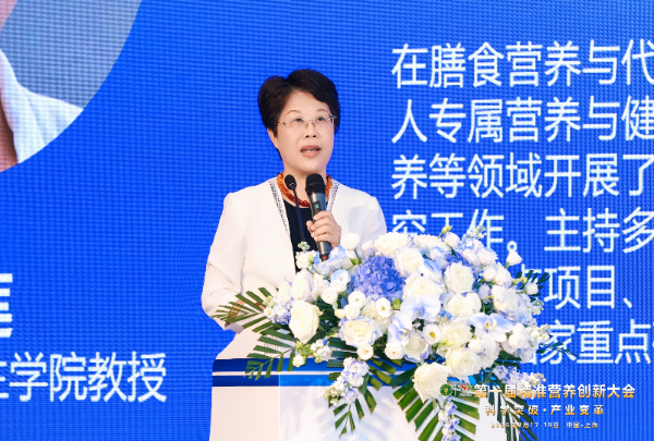 8月18日,中國營養學會理事長楊月欣在第一屆精準營養創新大會致辭。主辦方供圖