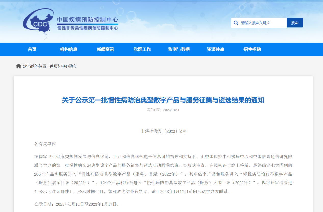 據了解,通過遴選評審的典型產品和服務將在中國疾控中心慢病中心和中國信通院官方網站上進行公示,并編入《慢性病防治典型數字產品與服務目錄》(2022年),在重要慢性病行業會議上發布,并推薦在全國慢性病綜合防控示范區應用推廣。