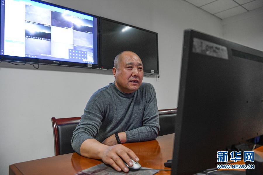 李振宇通過視頻監控查看凌情(1月25日攝)。新華社記者 馮開華 攝