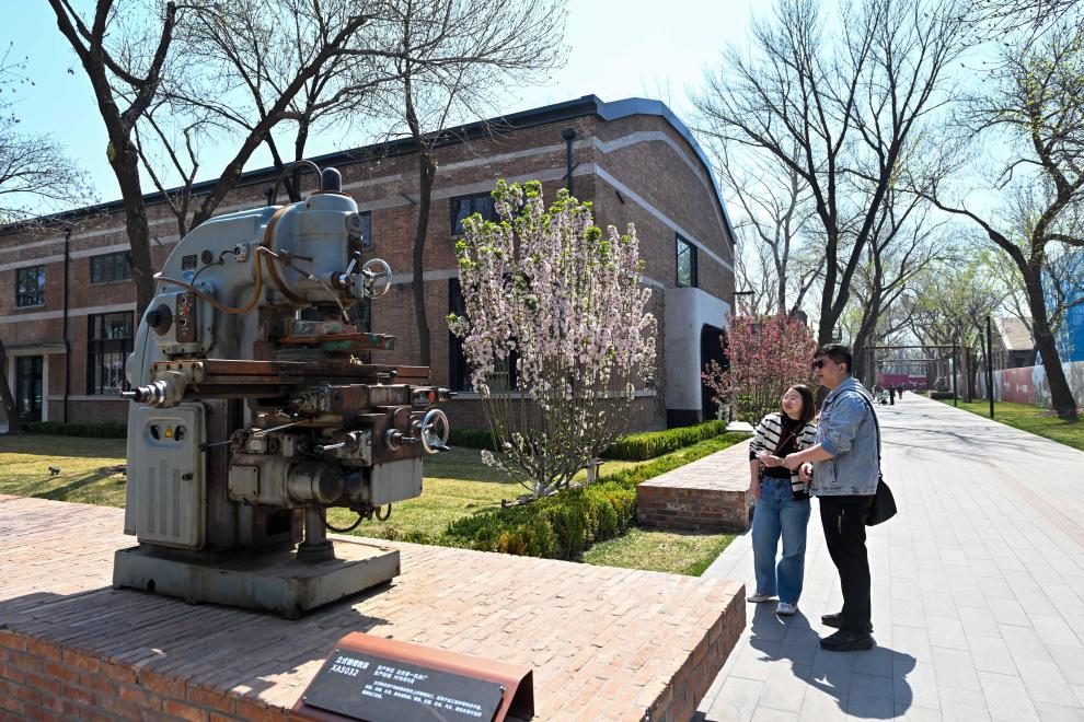 2025年4月6日,市民在津一產業公園參觀老廠區的工業設備。新華社記者 孫凡越 攝
