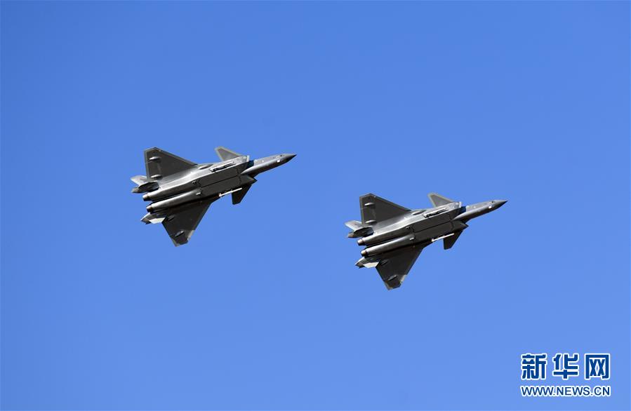 10月17日,殲-20在活動上進行飛行展示。當日,在吉林長春舉行的慶祝人民空軍成立70周年航空開放活動上,殲-20和運-20機型首次在東北地區進行飛行展示。 新華社記者 張楠 攝
