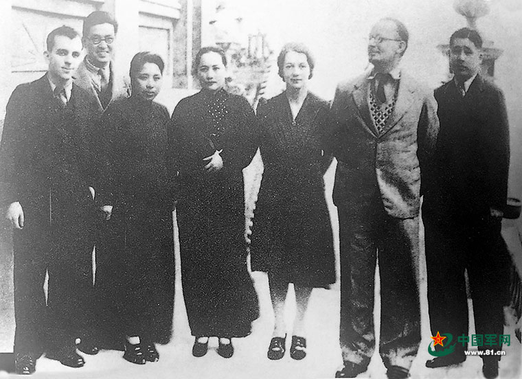 ????1938年6月,八路軍駐香港辦事處主任廖承志在香港與保衛中國同盟中央執行委員會主席宋慶齡及其他委員的合影。右一為廖承志,右四為宋慶齡。