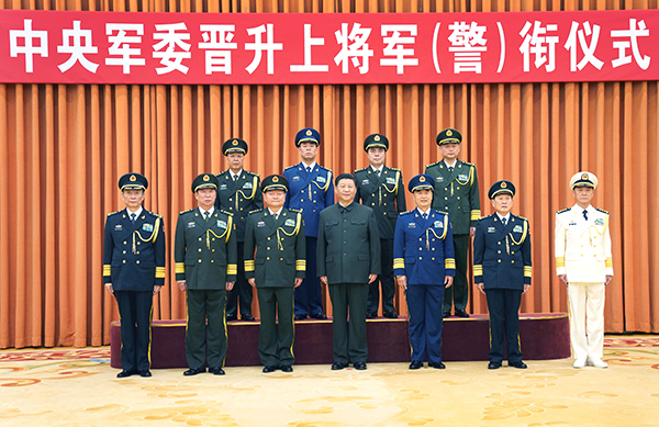 ????中央軍委舉行晉升上將軍銜警銜儀式 習近平頒發命令狀并向晉銜的軍官警官表示祝賀