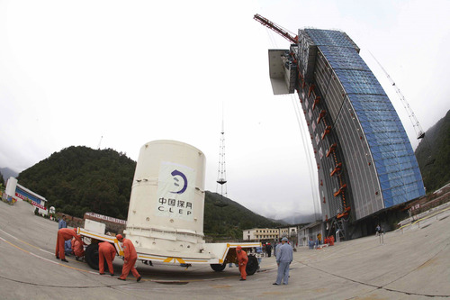 ????嫦娥一號衛星運抵西昌衛星發射中心西昌發射場(2007年10月11日攝)。新華社發(郭文彬 攝)
