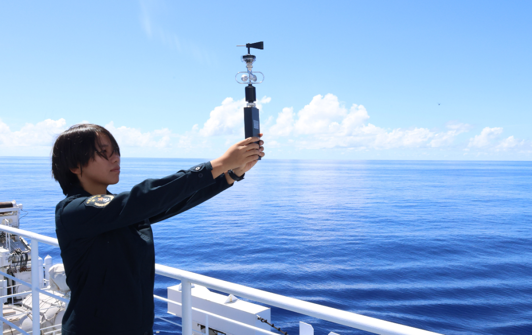 “絲路方舟”號醫院船艦員監測風向 (崔曉洋 攝)