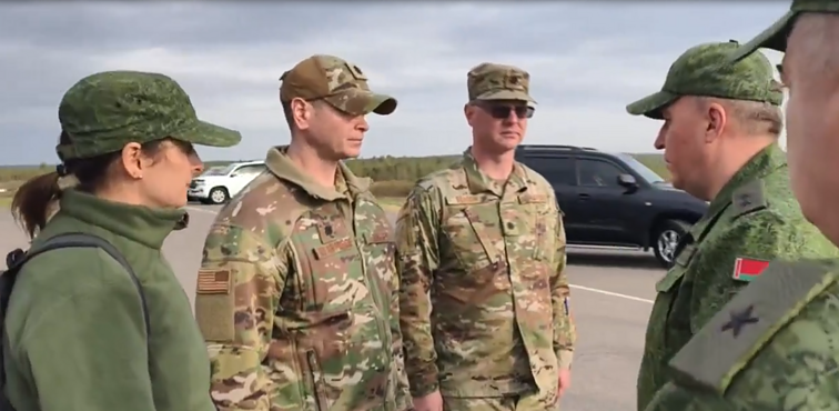 白俄羅斯國防部長赫列寧與兩名美軍官員進行交流。圖自白俄羅斯媒體