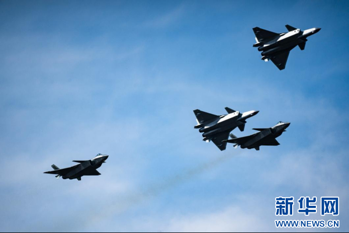 9月20日,殲-20進行四機編隊機動飛行展示。新華網 丁梓朔 攝