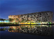 Five Olympic rings illuminate National Centre for the Performing Arts