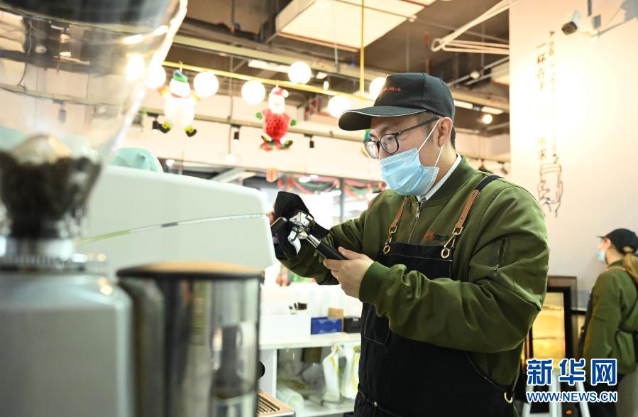 程啟濤在福建省南平市武夷新區的臺灣青年實訓基地制作咖啡(2020年12月30日攝)。新華社記者 林善傳 攝