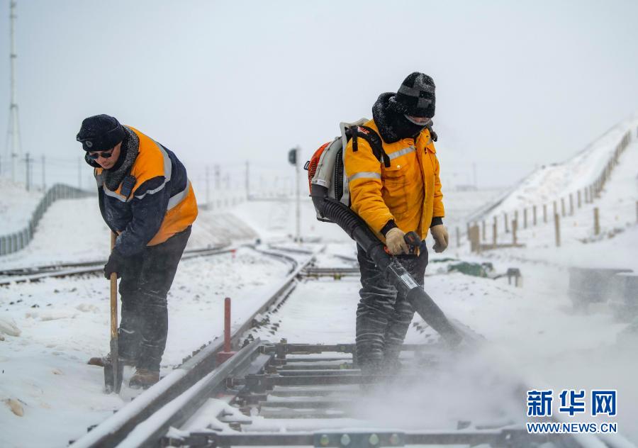 瑪依塔斯風區是我國乃至世界罕見的暴風雪災害區。每年冬季,這里都會出現風吹雪現象,極易導致鐵路線上的積雪板結,影響列車運行。鐵廠溝維修工隊每周風雪無阻,進行清雪除冰作業。為提高效率和保障作業人員安全,他們采取軌道除雪車和人工相結合的作業方式。