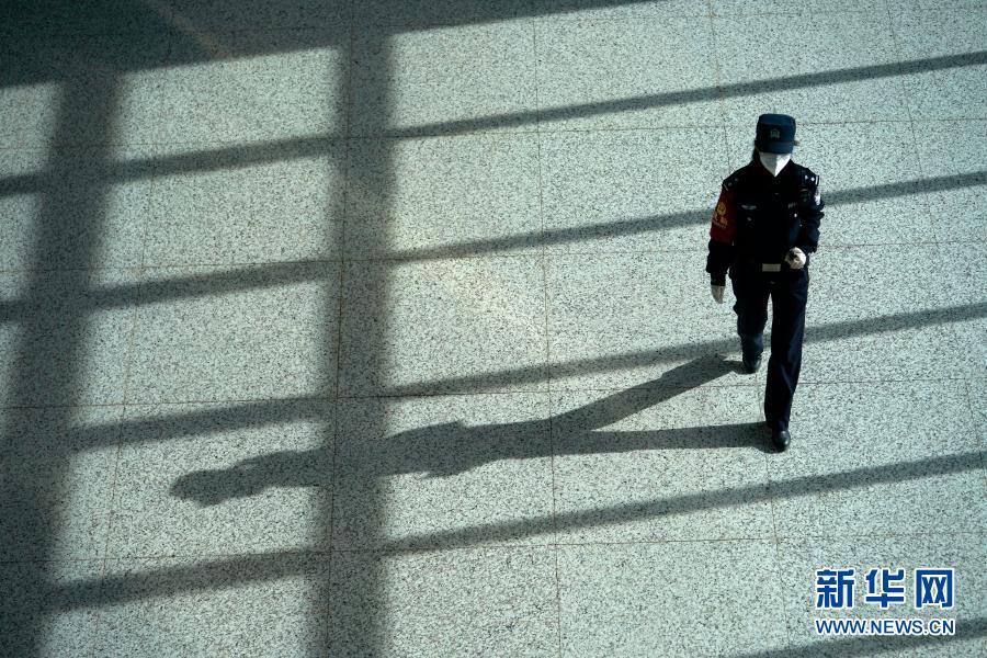 郭江嫚在石家莊東站巡邏(1月10日攝)。新華社記者 邢廣利 攝