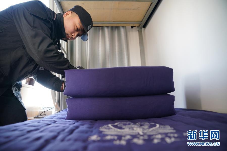 吳長龍在宿舍整理內務(1月10日攝)。新華社記者 牟宇 攝