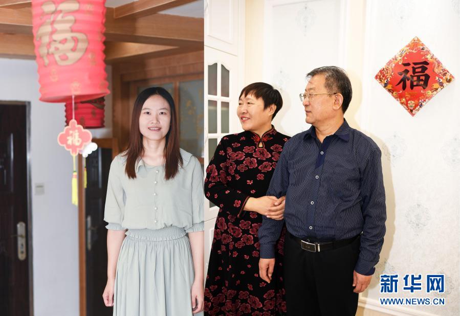 這是一張拼版的“全家福”照片。左圖為“90后”助產士陳志昊在廣州的家中(2月6日,新華社記者鄧華攝);右圖為陳志昊的父親陳國謙(右)、母親龐麗在山東泰安的家中(2月8日,新華社記者王凱攝)。