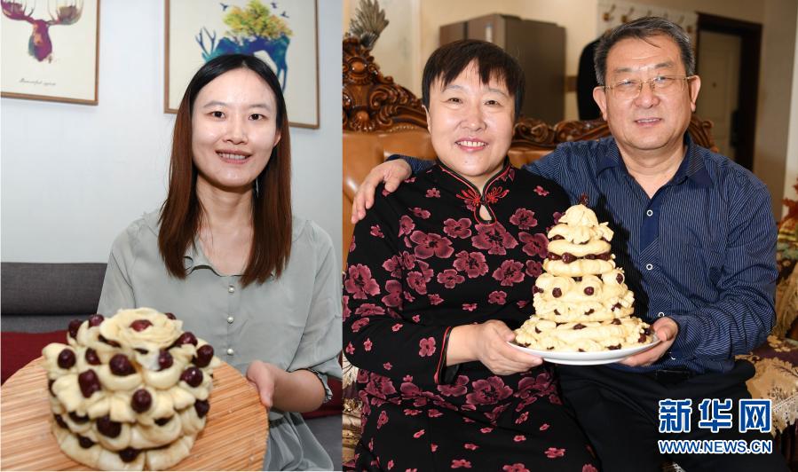 這是一張拼版的“全家福”照片。左圖為陳志昊在廣州的家中,捧著剛剛做好的泰安特色面食“步步高升”(2月6日,新華社記者鄧華攝);右圖為陳志昊的父親陳國謙(右)、母親龐麗在山東泰安的家中,捧著剛剛做好的泰安特色面食“步步高升”(2月8日,新華社記者王凱攝)。