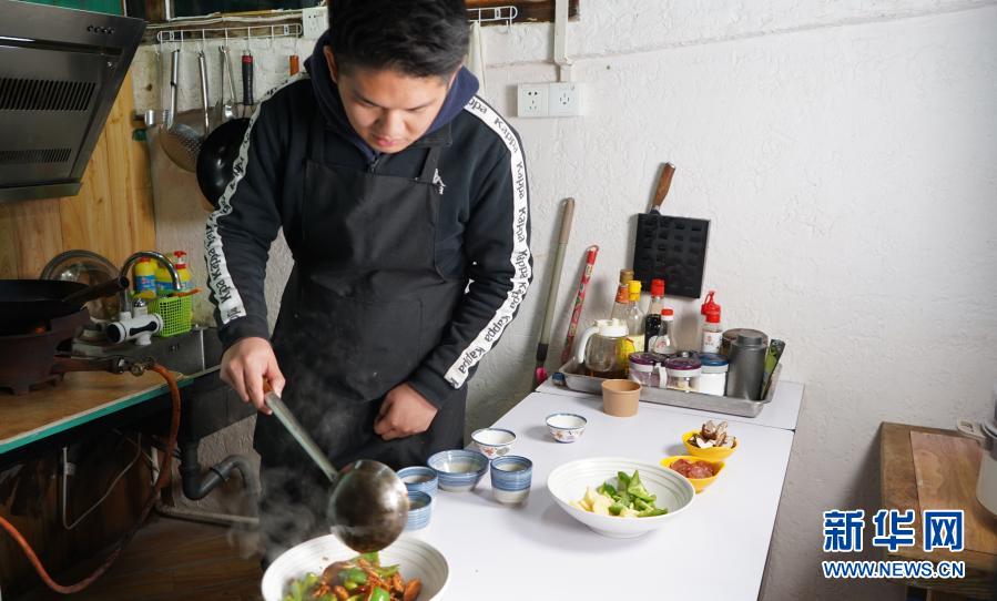 陳緯在燒制自己的臺灣特色拿手好菜(1月29日攝)。新華社記者 褚萌萌 攝