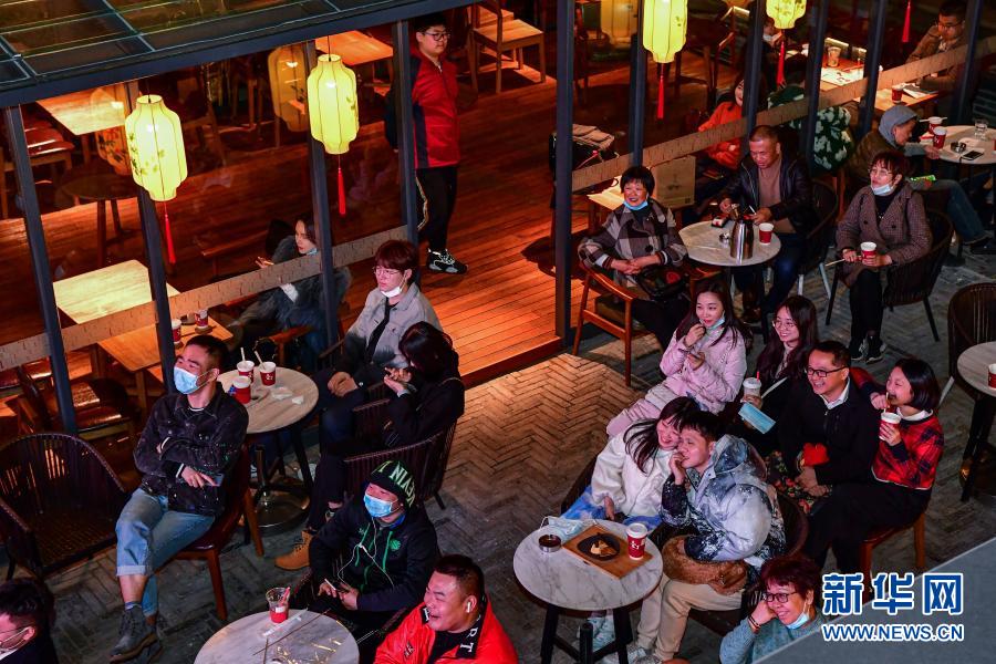 除夕夜,成都寬窄巷子景區內的壹丁24小時書吧咖啡館響應“就地過年”倡議,推出“來寬窄吃團圓飯看春晚”活動。上百名市民、游客圍坐在古樸的寬窄巷子院壩里,享受露天看春節聯歡晚會的樂趣。壹丁24小時書吧咖啡館的創始人還準備了餃子、湯圓請游客免費品嘗,成為一道別樣的年夜飯。