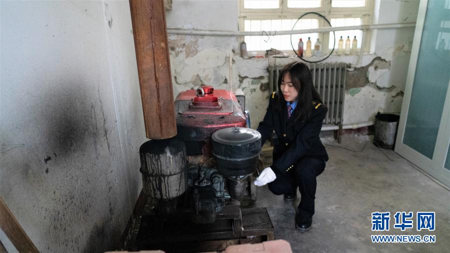 孫家寨站車站值班員李二鑫在使用發電機(2月10日攝)。新華社記者 嚴賦憬 攝