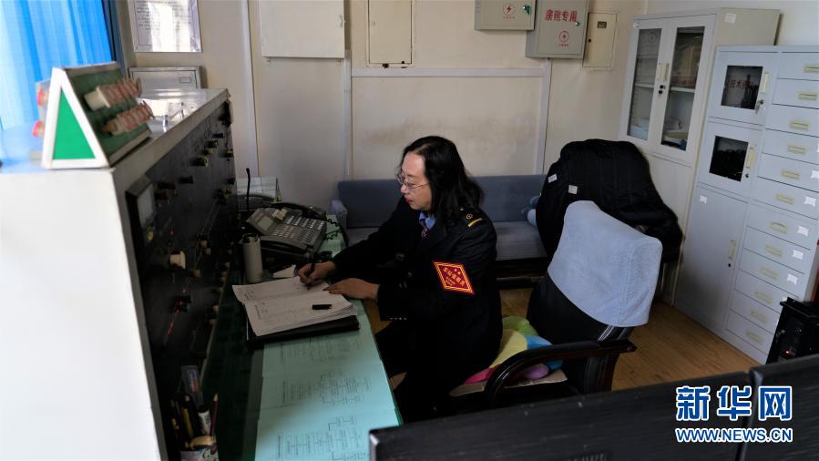 孫家寨站車站值班員徐建在記錄鐵路通行狀況(2月10日攝)。新華社記者 嚴賦憬 攝