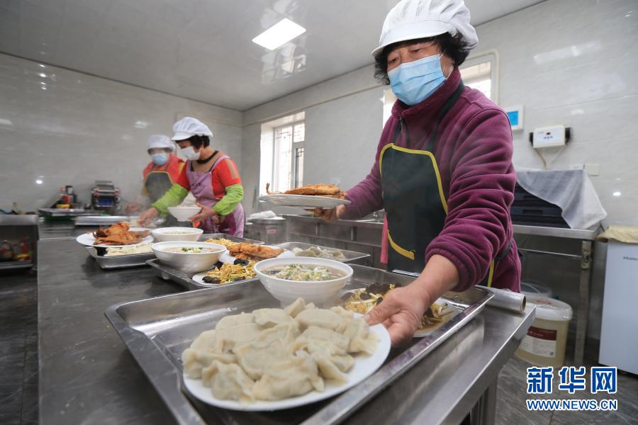 2月12日大年初一,在山東省榮成市斥山街道盛家村的“暖心食堂”,志愿者為留守老人準備午飯。新華社發(王福東 攝)
