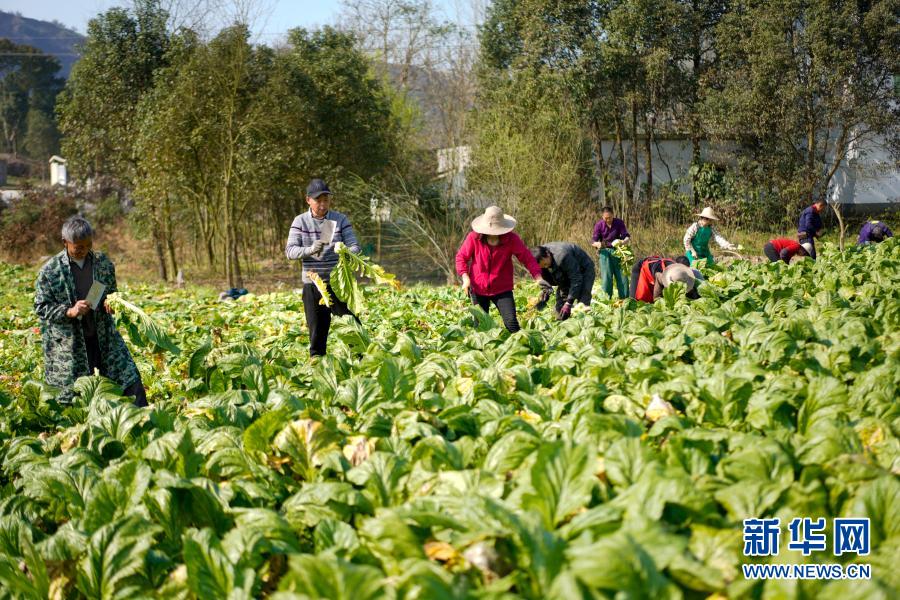 2月20日,在重慶市涪陵區江北街道,村民在田間收砍青菜頭。