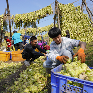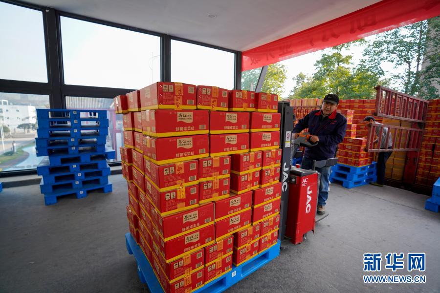 2月20日,在重慶市涪陵榨菜集團股份有限公司的倉庫內,工人在操作機械裝運成品榨菜。新華社記者 劉潺 攝