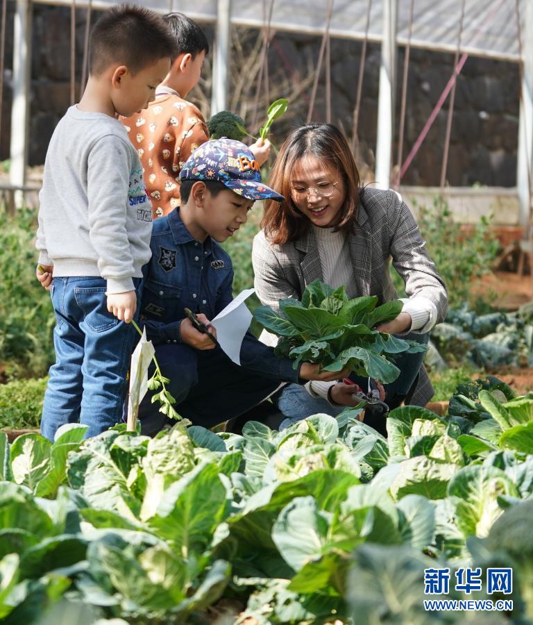 謝丞恩在農場內帶領來參觀的小朋友們認識蔬菜(2月20日攝)。新華社記者 季春鵬 攝
