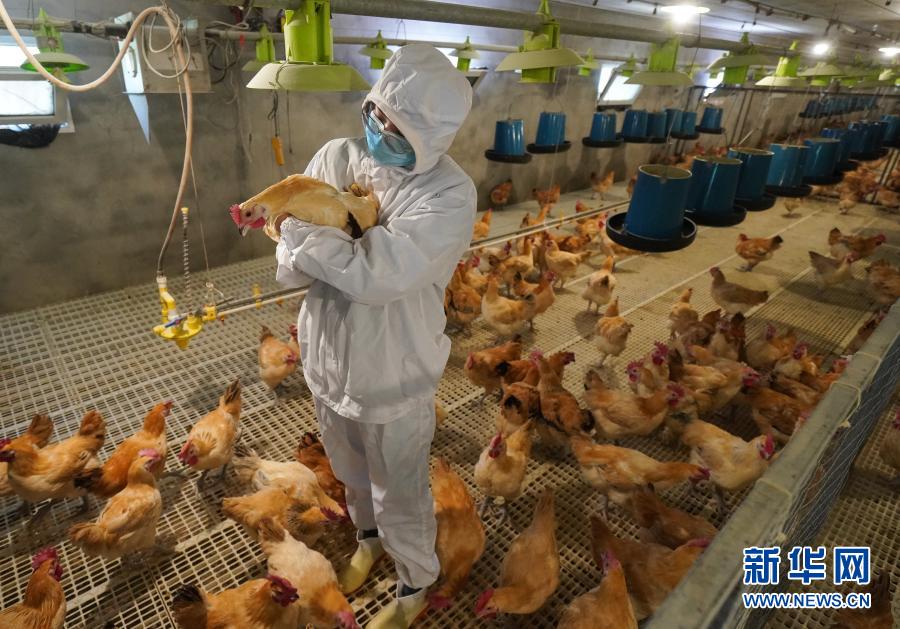 謝丞恩在農場查看種雞的生長情況(2月20日攝)。新華社記者 季春鵬 攝