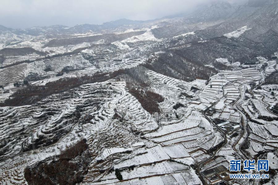 連日來,河北省沙河市西部山區出現降雪天氣,白雪覆蓋的梯田宛如一幅水墨畫。