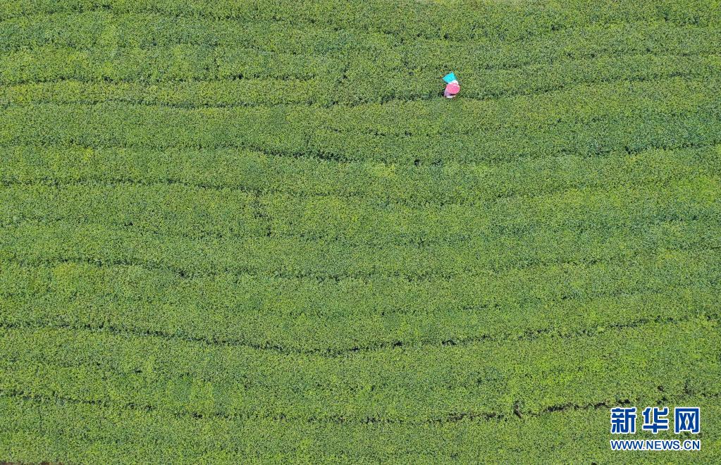 4月2日,茶農在福鼎市佳陽畬族鄉的一處茶山采茶(無人機照片)。新華社記者 林善傳 攝