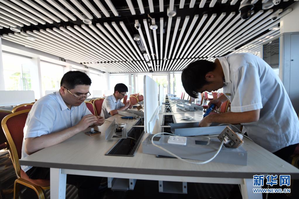 4月10日(ri),工(gong)作人(ren)員在安裝新聞中心網(wang)絡設施。
