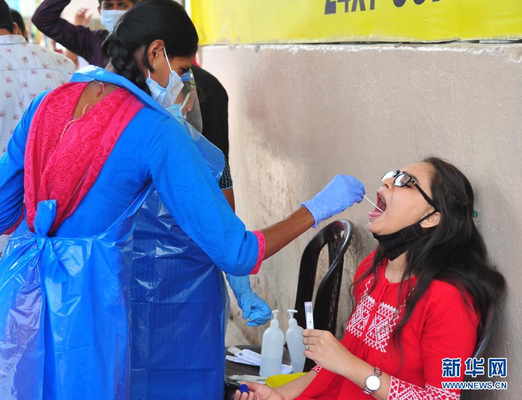 4月11日,一名(ming)女子在印度班加羅爾的一個(ge)公(gong)交(jiao)站接受新冠病毒檢測取樣。