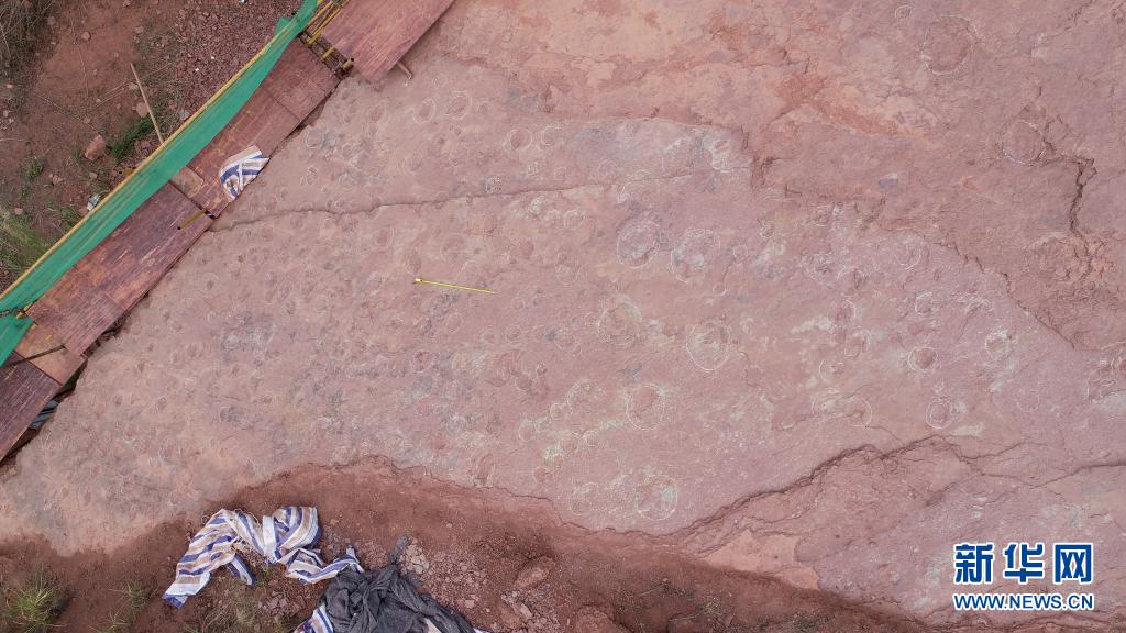 這(zhe)是山坡上恐(kong)龍足跡化石(shi)剖(pou)面(4月6日攝,無人機(ji)照片)。