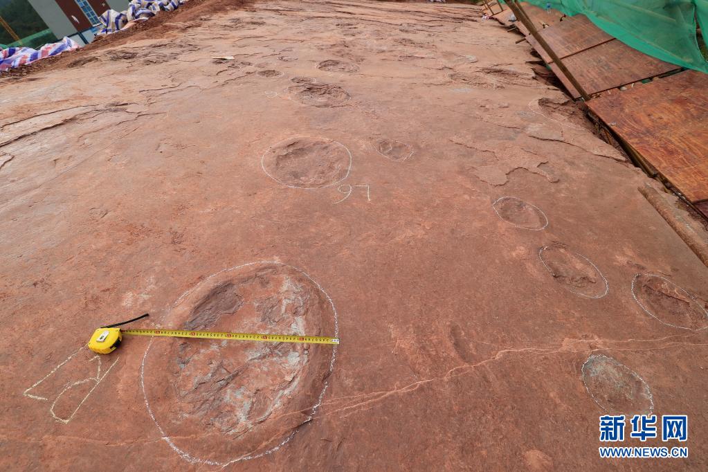 這是新發(fa)現的大型蜥腳類恐龍足跡化(hua)石(shi)(4月6日攝(she))。