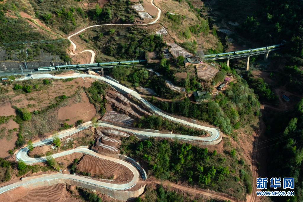 這是即(ji)將(jiang)抵達成(cheng)昆鐵路沙馬拉達站的5634次列車和(he)通站公(gong)路(4月11日攝(she),無人機照片)。