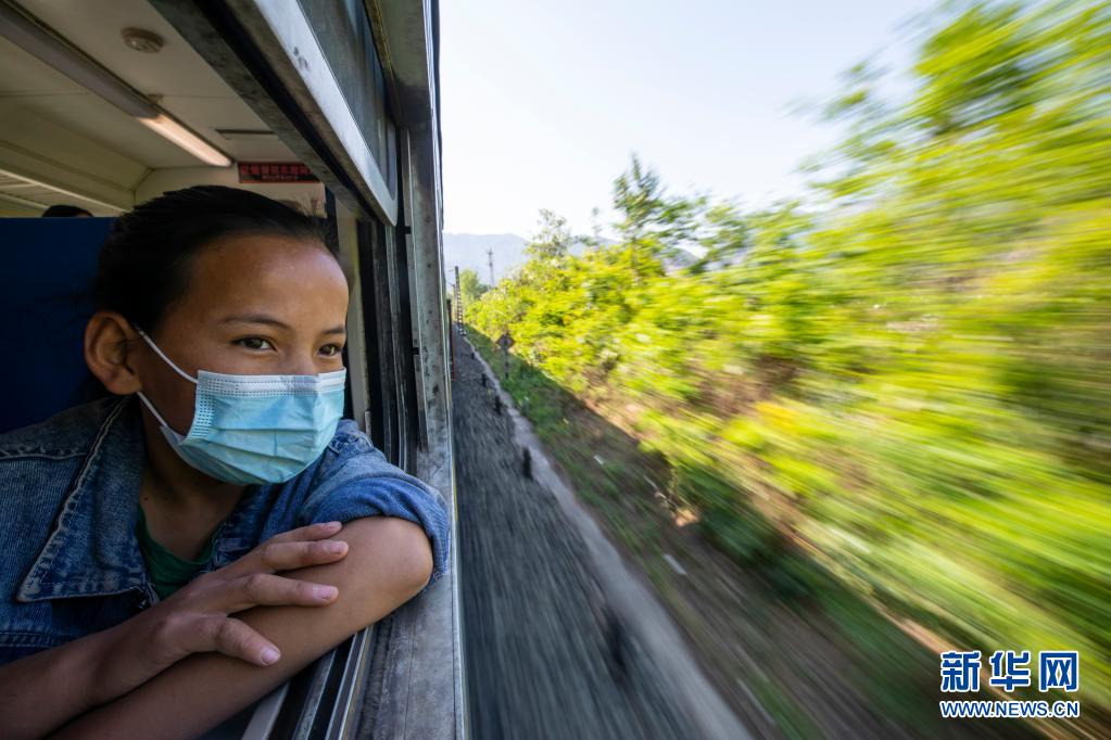 在乘坐5633次列車從(cong)家返校(xiao)途(tu)中,一名學(xue)生(sheng)望(wang)著(zhu)窗外(wai)的風(feng)景(4月(yue)11日攝)。新華社記(ji)者(zhe) 沈(shen)伯韓 攝