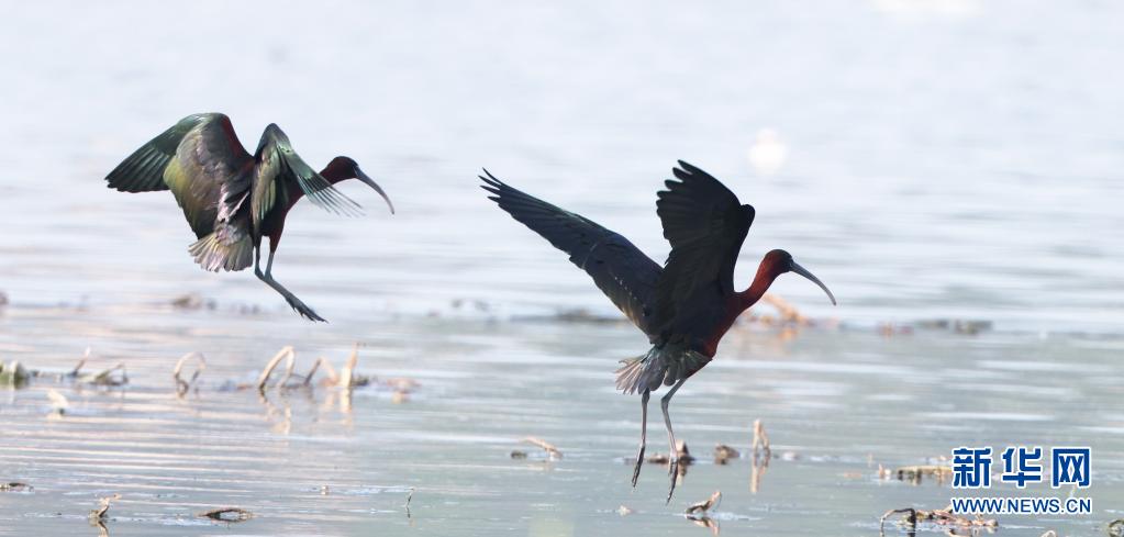彩(cai)鹮在福建省霞(xia)浦縣(xian)福寧灣灘涂覓食、嬉戲(xi)(4月17日攝(she))。一(yi)對彩(cai)鹮近日現身福建省霞(xia)浦縣(xian)福寧灣灘涂的(de)視頻,經當地(di)媒體播發后引起轟動,各地(di)攝(she)影師及當地(di)生態保(bao)護(hu)志愿者紛至沓來,一(yi)睹它們的(de)“芳容”。新(xin)華社記者 梅(mei)永存攝(she)