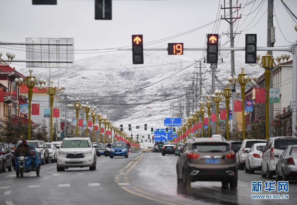 這是(shi)4月19日(ri)在青海(hai)省果(guo)洛藏族自治州甘德縣拍攝(she)的雪后街景(jing)。新華社記者 張曼怡 攝(she)