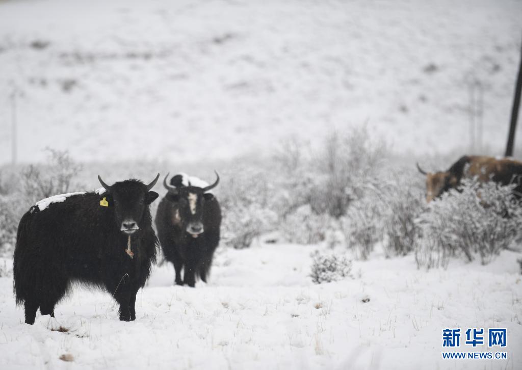 這是4月19日(ri)在青(qing)海省果洛藏(zang)族(zu)自(zi)治州甘(gan)德縣拍(pai)攝的雪中(zhong)的牦牛。新(xin)華(hua)社記(ji)者(zhe) 張(zhang)曼(man)怡(yi) 攝