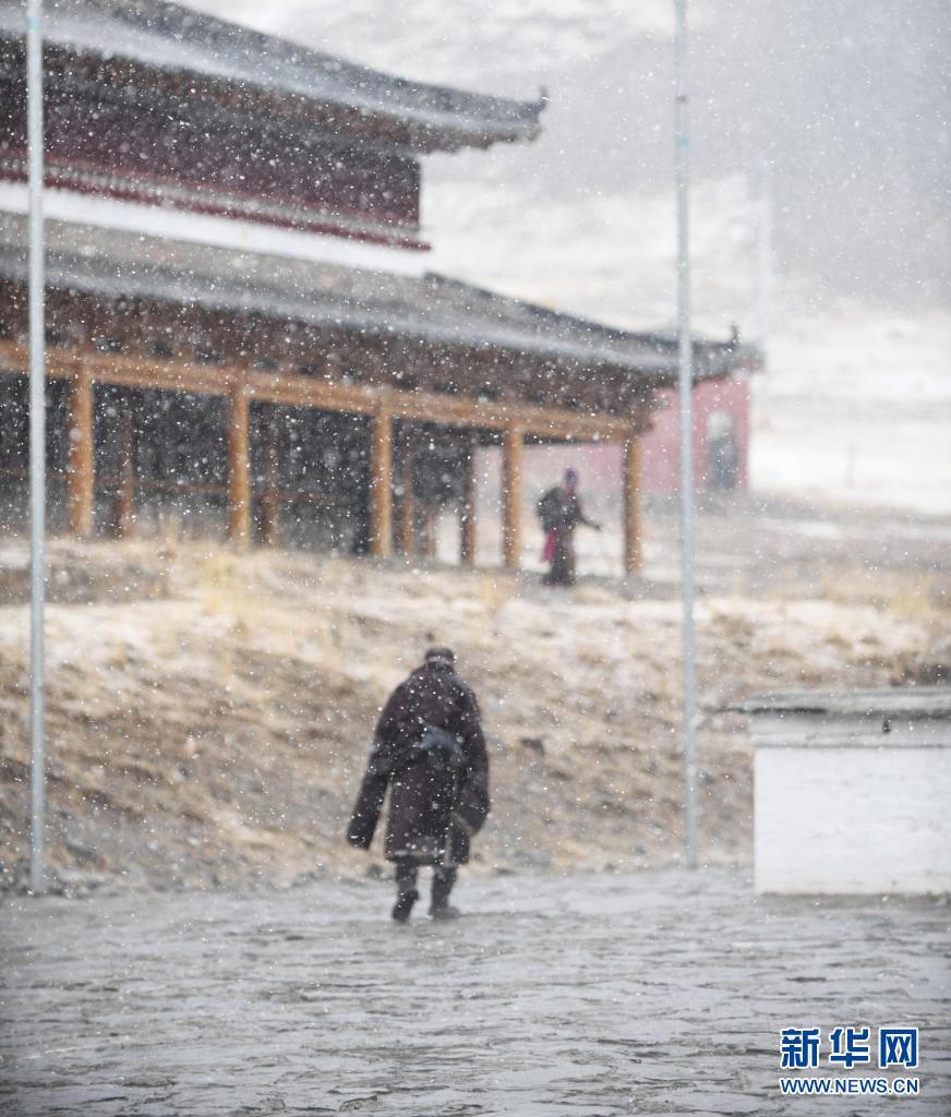 這是4月19日(ri)在青海省(sheng)果洛藏族自治州甘德縣拍攝的雪中行(xing)走的村民。新華社記者 張曼怡 攝