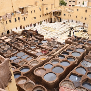 皮革業是摩洛哥的重要產業之一,非斯古城中的一些皮革染坊至今仍延用傳統工藝為皮革染色。