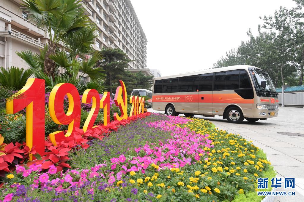 6月29日,慶祝中國共產黨成立100周年“七一勛章”頒授儀式在北京人民大會堂金色大廳隆重舉行。這是“七一勛章”獲得者集體乘坐禮賓車從住地出發,前往人民大會堂。新華社記者 李賀 攝