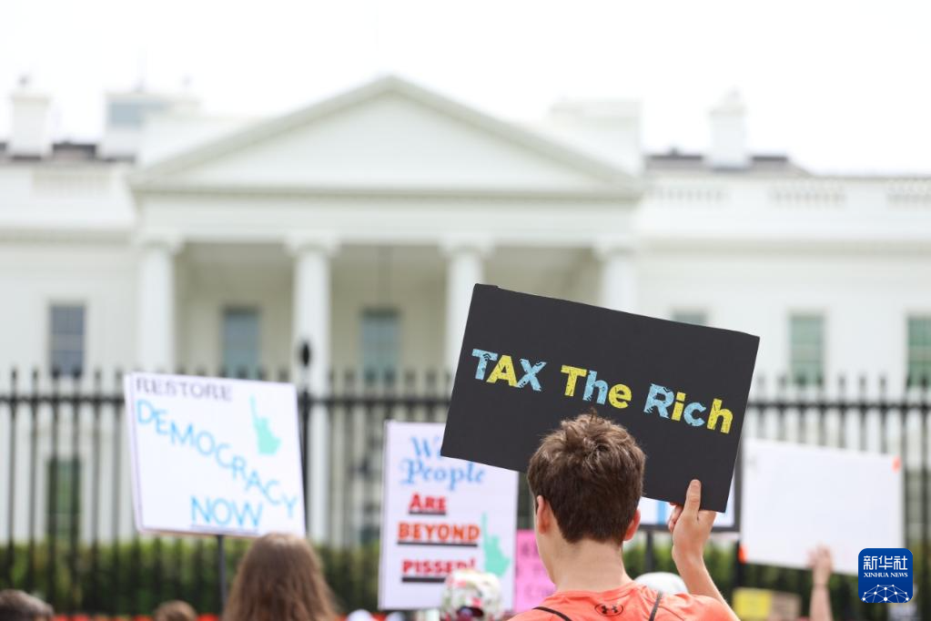 4月19日,人們在美國首都華盛頓白宮門前參加抗議活動。