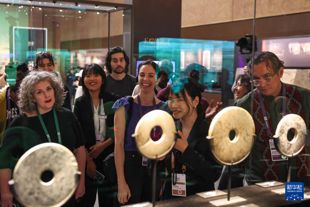 4月23日,參加第三屆聯合國教科文組織國際博物館高級別論壇的嘉賓在參觀良渚博物院。